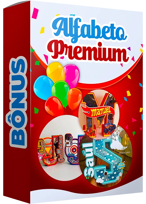 O Alfabeto Premium traz moldes de letras em 3D prontas para você usar na decoração e montar o nome da criança com um visual bonito e chamativo.