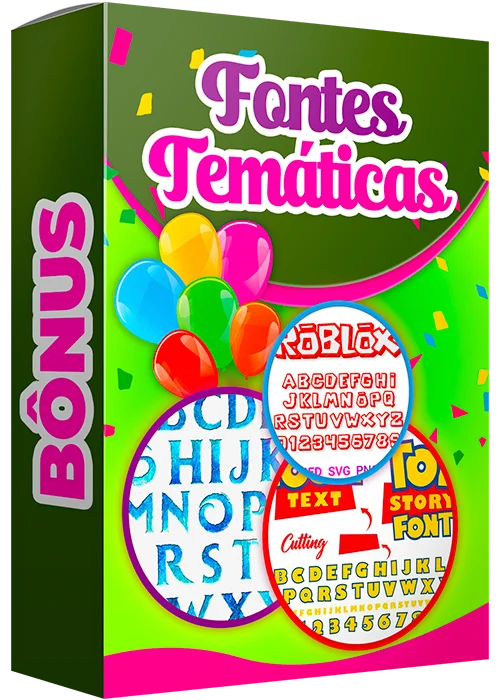 Você recebe mais de 600 fontes temáticas dos temas mais conhecidos para usar nos nomes e textos da decoração, de acordo com o tema da festa.