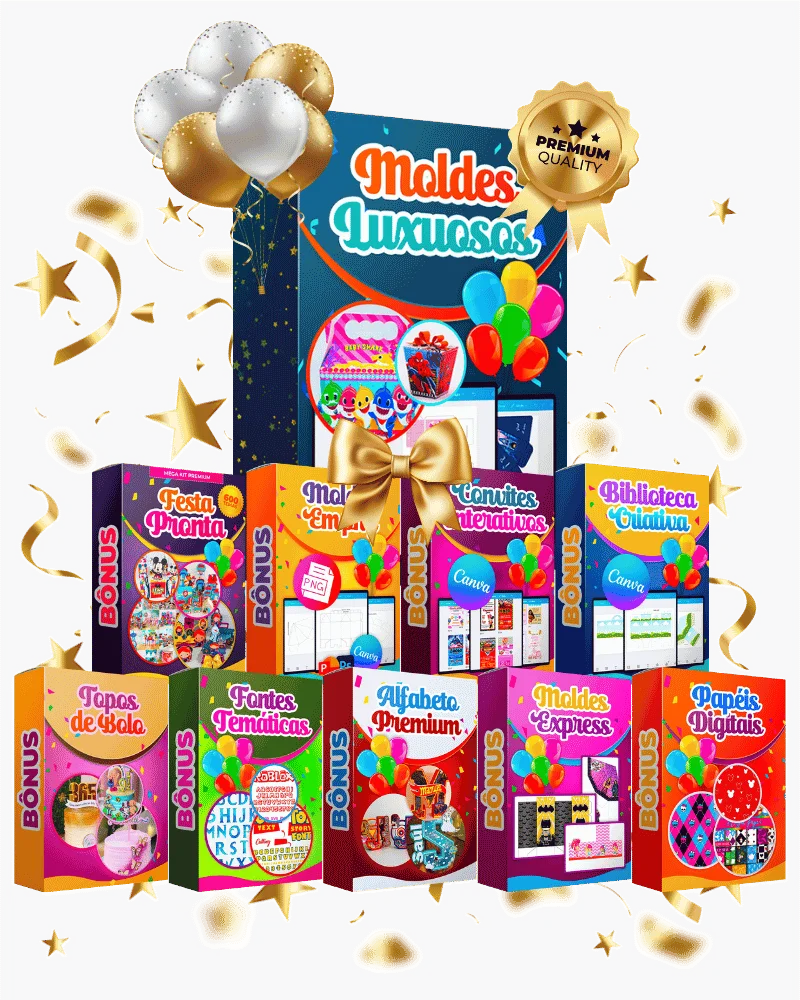 O Mega Pack Festa Pronta traz mais de 600 temas completos com personagens, papéis e elementos decorativos para você combinar com os moldes e montar a festa inteira.