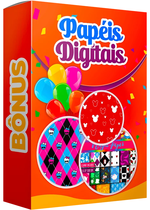 Os Papéis Digitais são fundos temáticos prontos para você usar nas artes da festa e combinar com qualquer tema.